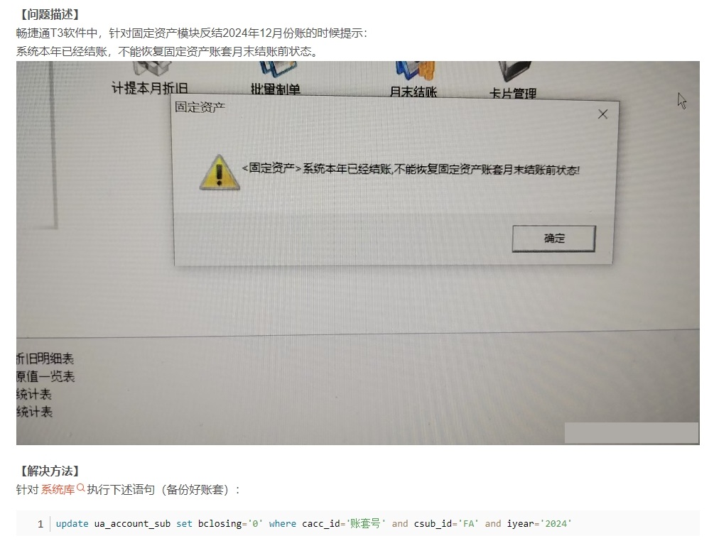 【T3】固定资产反结12月份提示系统本年已经结账。