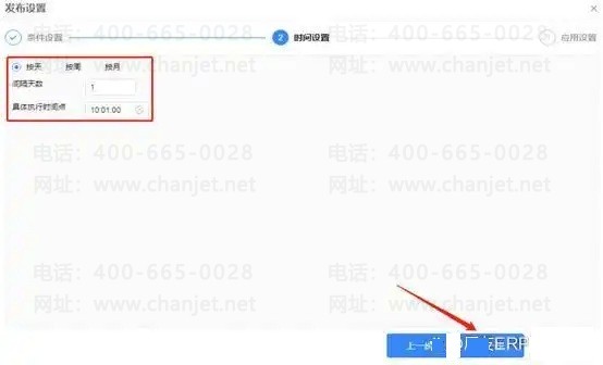 在发布条件中,可以按天、按周、按月设置,根据实际需要设置好相应条件,点击下一步,