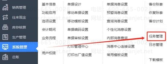 3、如果按以上都操作了,还是不能结账,这就有异常了,需要到任务管理中进行解锁操作,鼠标点击系统管理-任务管理,然后全选再点击解锁,如图下操作: