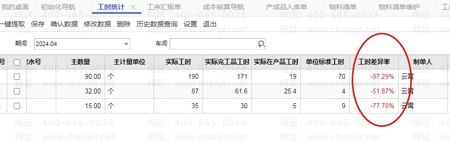 这个是按照实际工时和标准工时计算出来的,实际完工工时或标准工时为0或空时,该字段为空