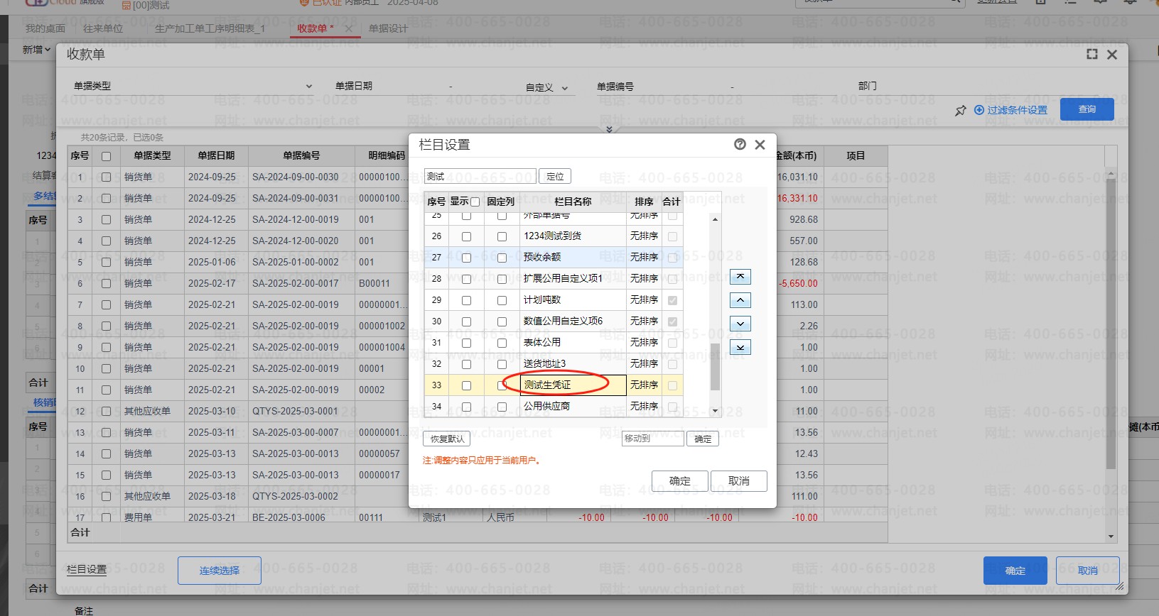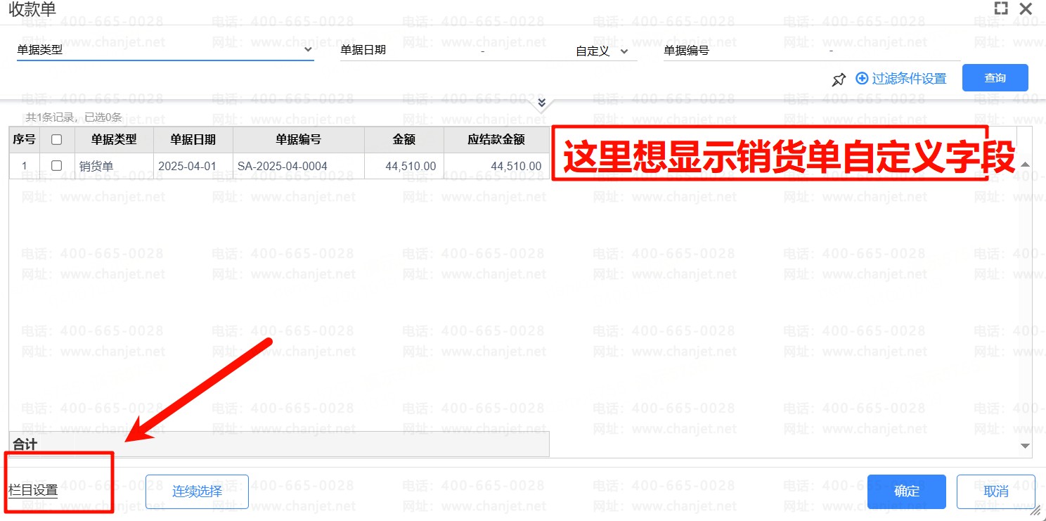 T+专属云19.0销货单上自定义的有些字段,想在做收款单选单的时候显示出来,供收款单时候参考,这里该如何设置?