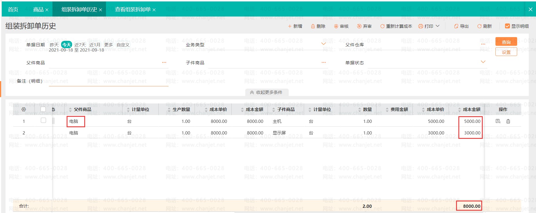 一、张老板经营的电脑及配件的型号规格比较多,想要实时掌握库存状况、采购订单到货情况、组装了多少台电脑、组装的台式机成本是多少,拆卸出了多少配件。
