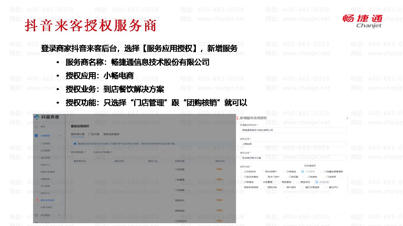 登录商家抖音来客后台,选择【服务应用授权】,新增服务