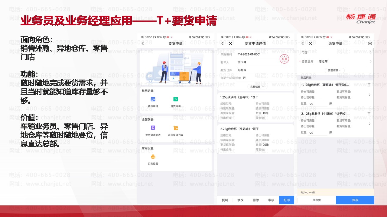 车销业务员、零售门店、异地仓库等随时随地要货,信息直达总部。