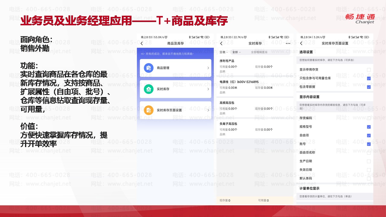 实时查询商品在各仓库的最新库存情况,支持按商品、扩展属性(自由项、批号)、仓库等信息钻取查询现存量、可用量,