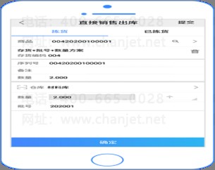 销售支持功能:按订单拣货/退货、按销货单拣货/退货、销售验货、销售退货验货、直接销货出库、直接销售退货
