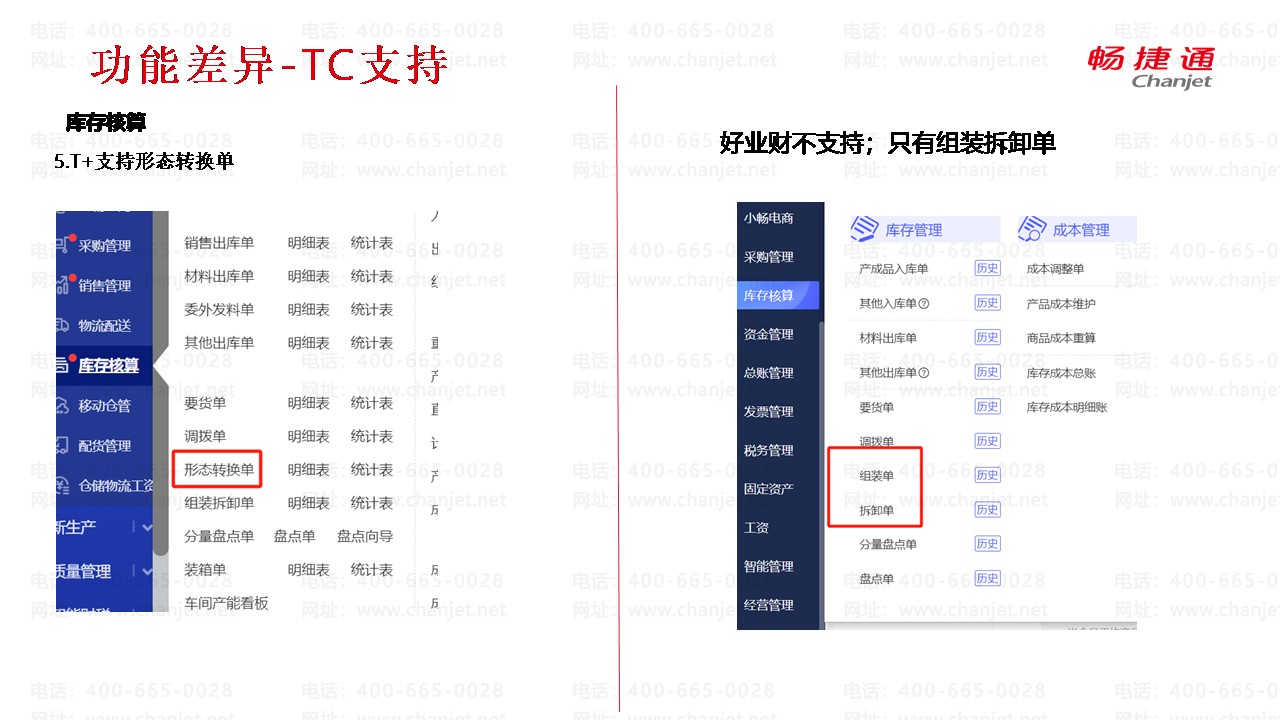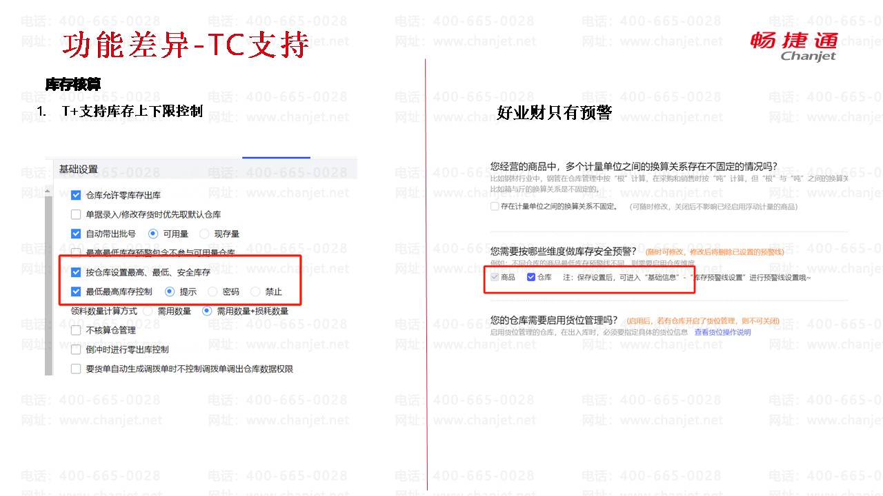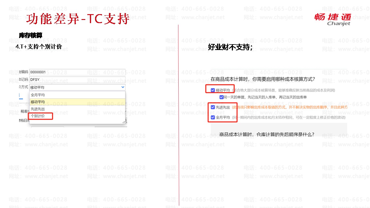 畅捷通T+和好业财库存核算功能差异