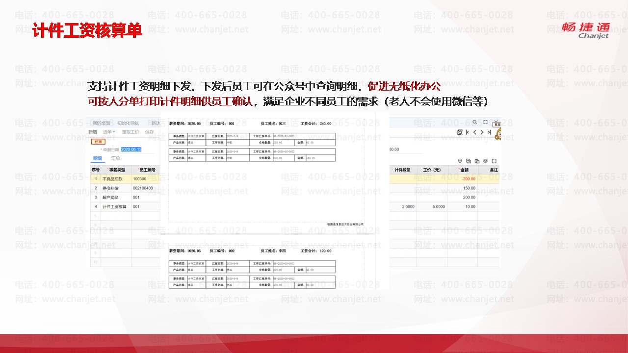 可按人分单打印计件明细供员工确认,满足企业不同员工的需求(老人不会使用微信等)