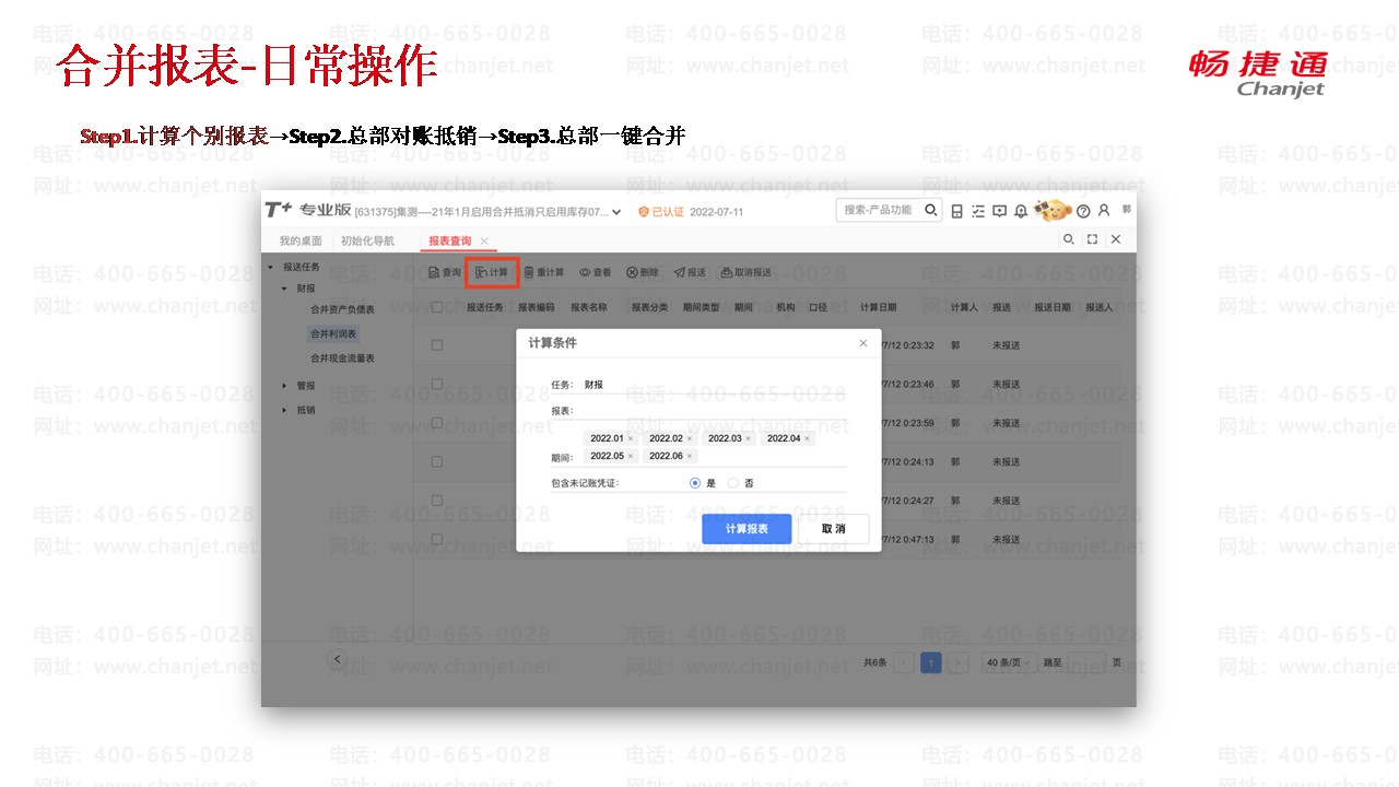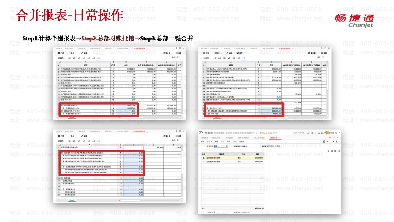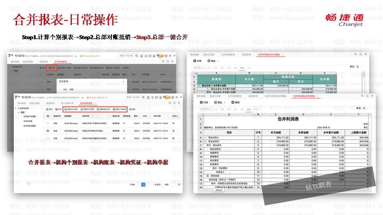 Step1.计算个别报表→Step2.总部对账抵销→Step3.总部一键合并