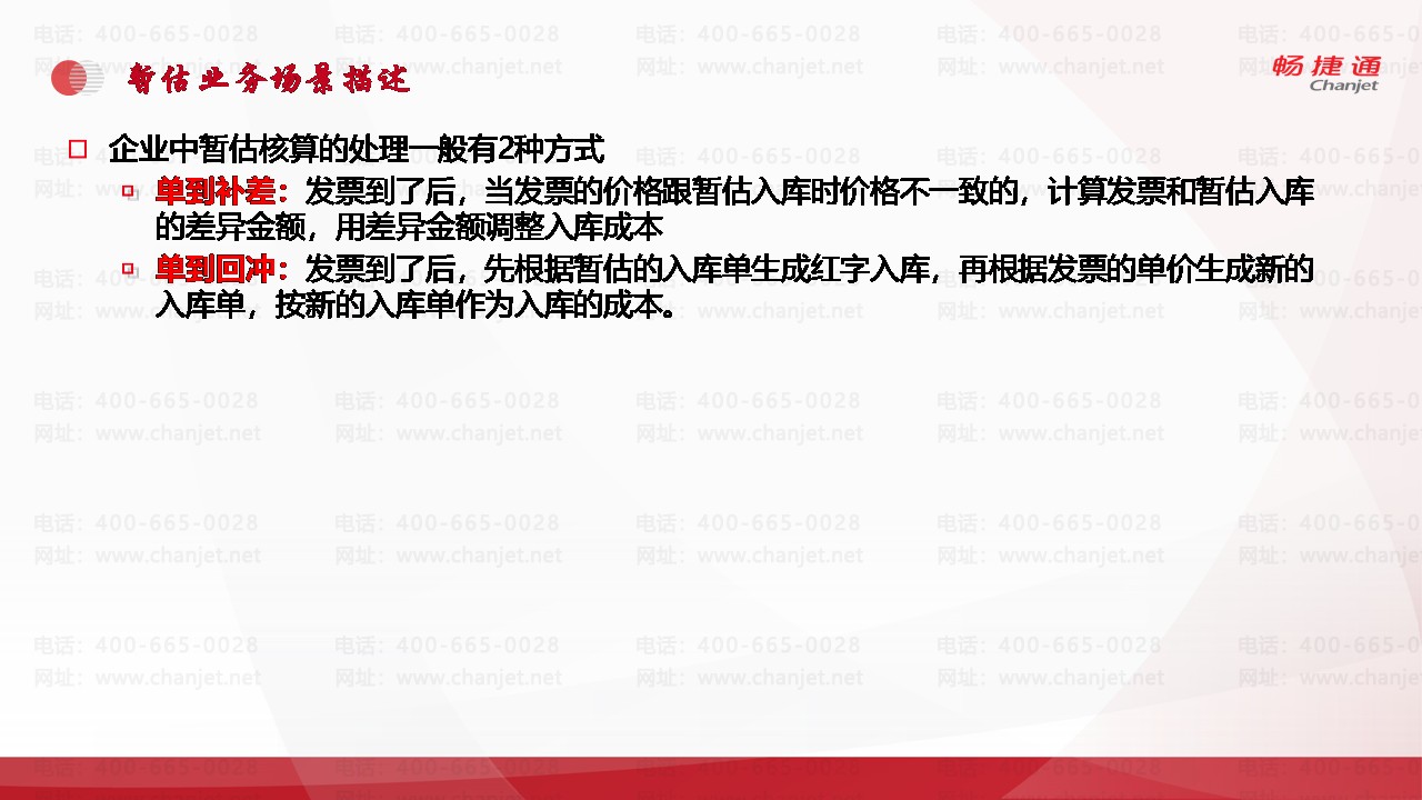 单到回冲:发票到了后,先根据暂估的入库单生成红字入库,再根据发票的单价生成新的入库单,按新的入库单作为入库的成本。