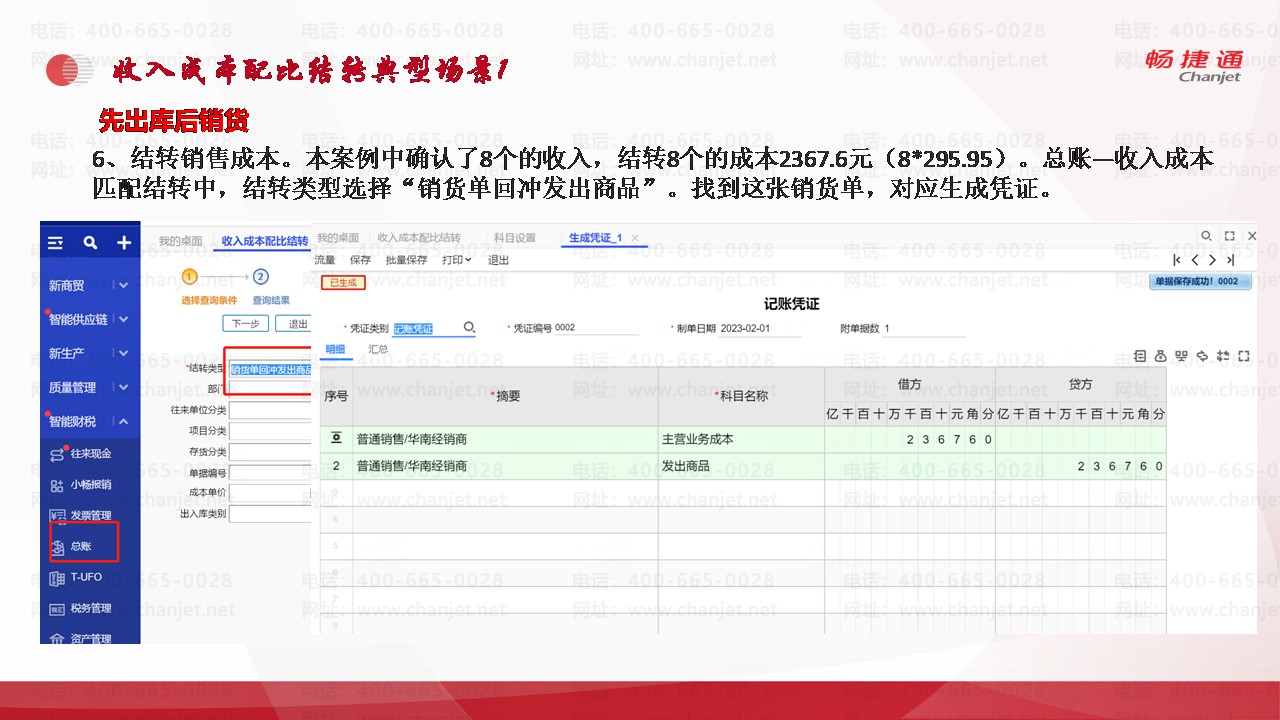 • 3、再通过“销售收入成本配比结转”来实现销售成本的确认。
