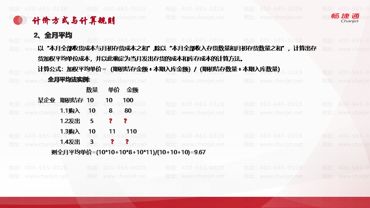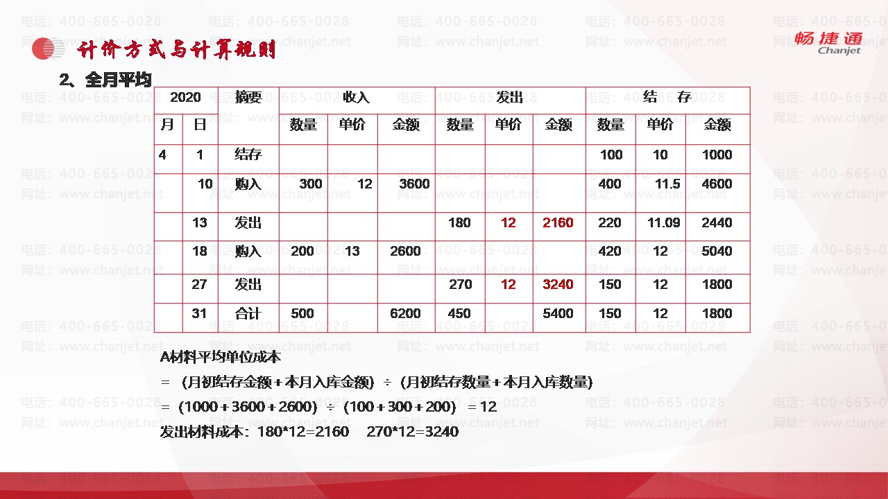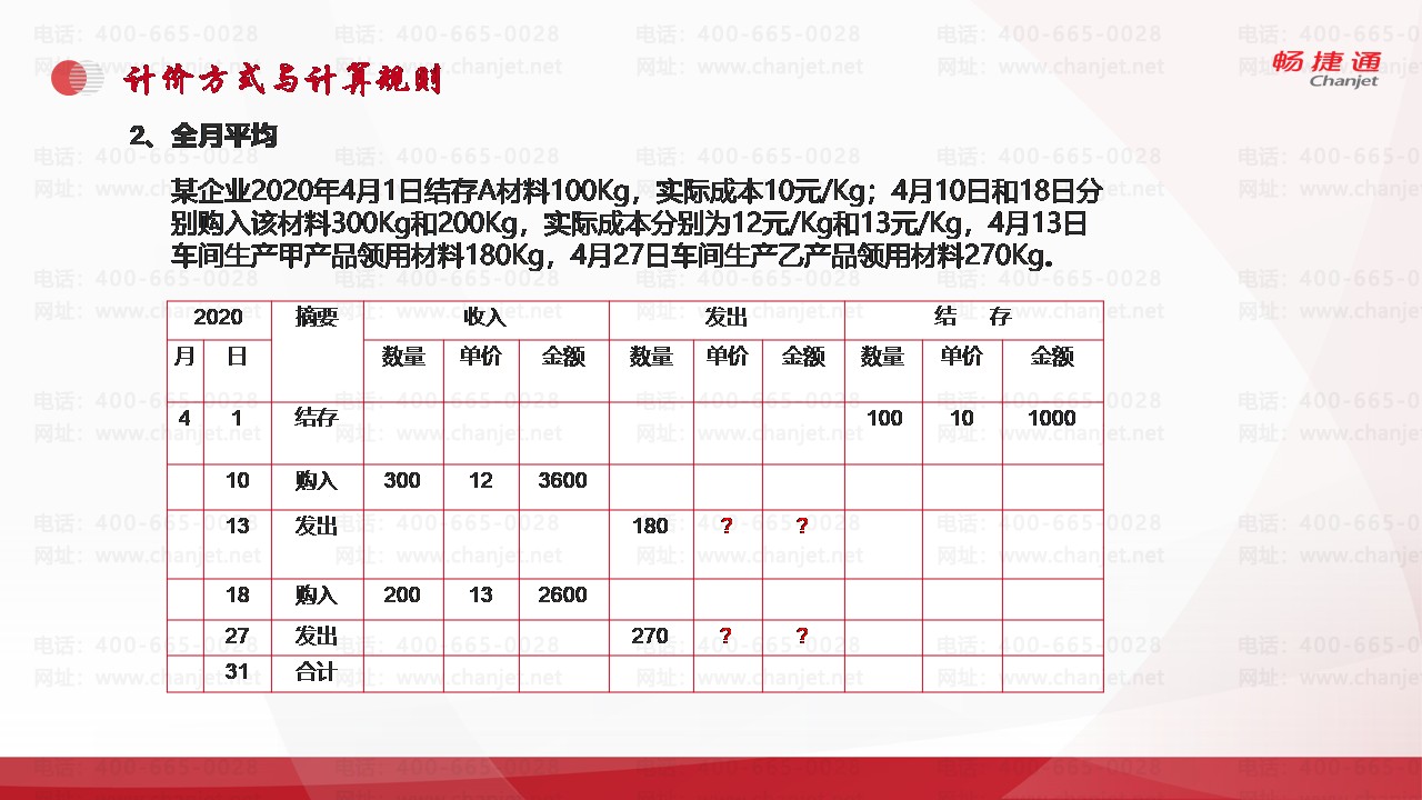全月平均法实例: