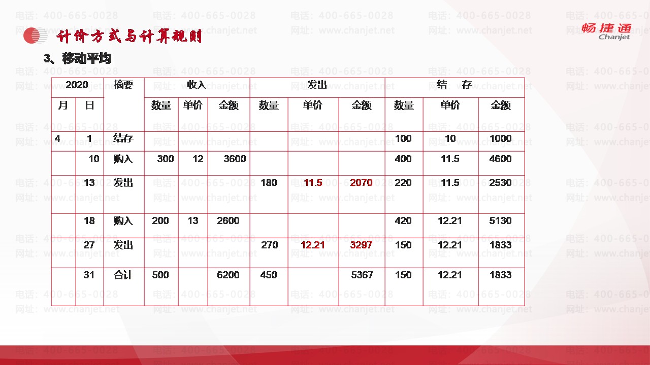 广州市畅捷通T+计价方式与计算规则移动平均