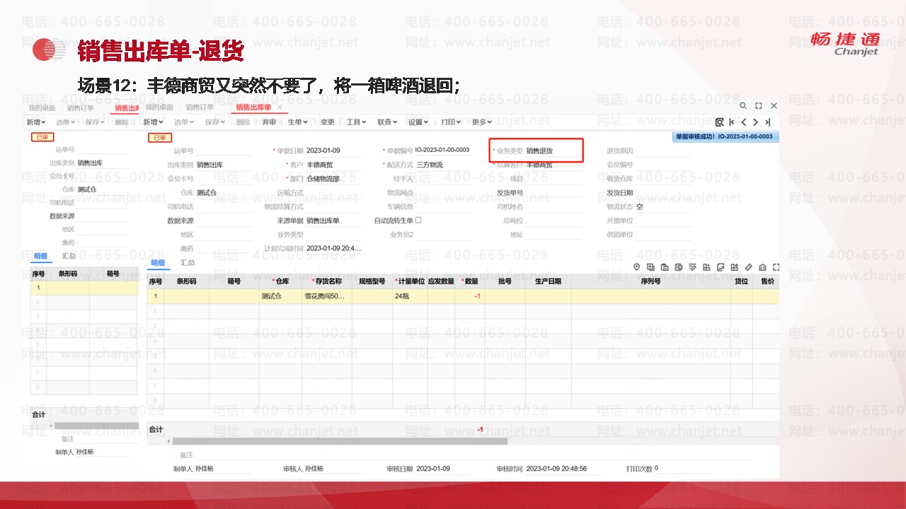 场景12:丰德商贸又突然不要了,将一箱啤酒退回;