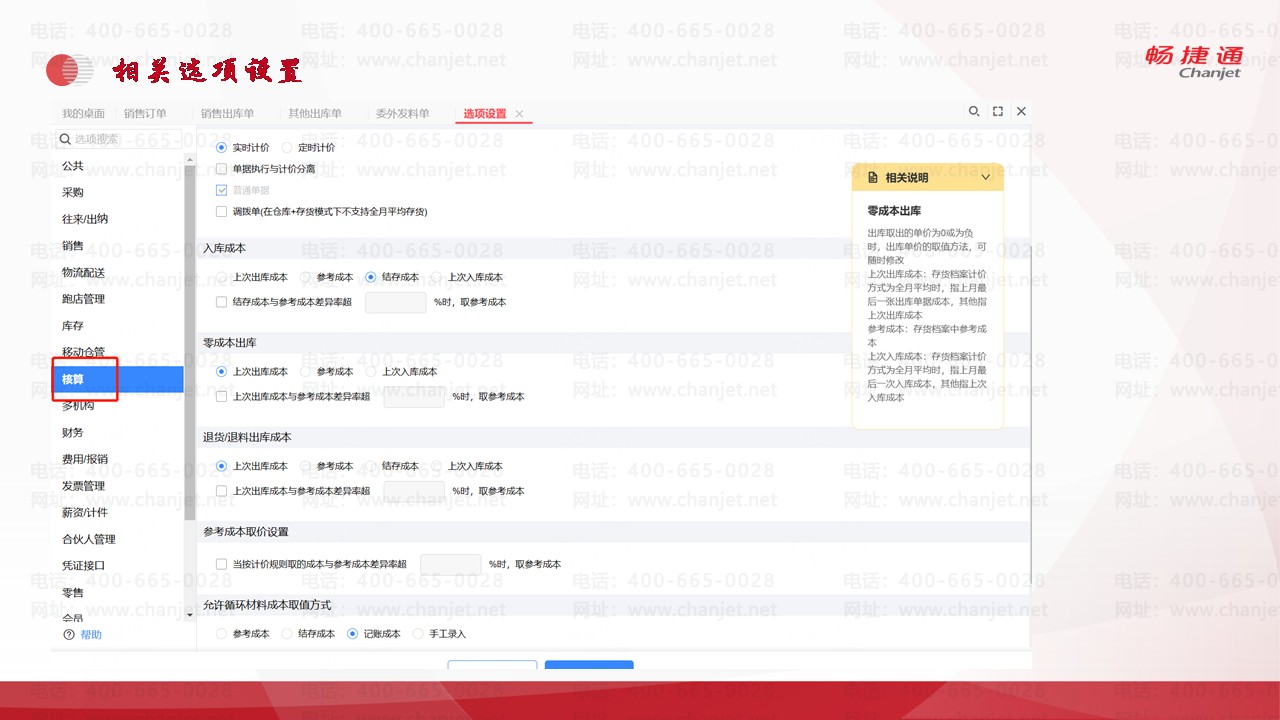 用友T+库存和核算报表的相关选项设置