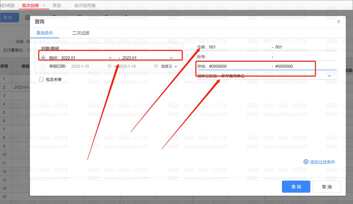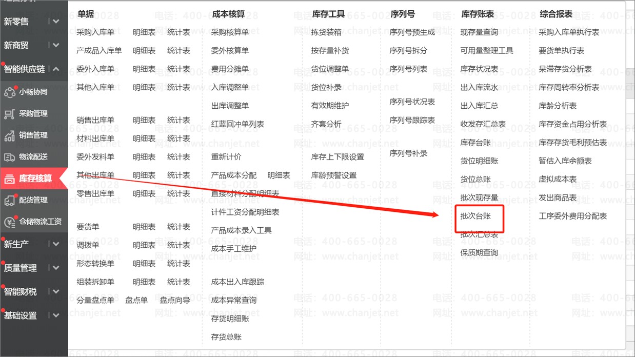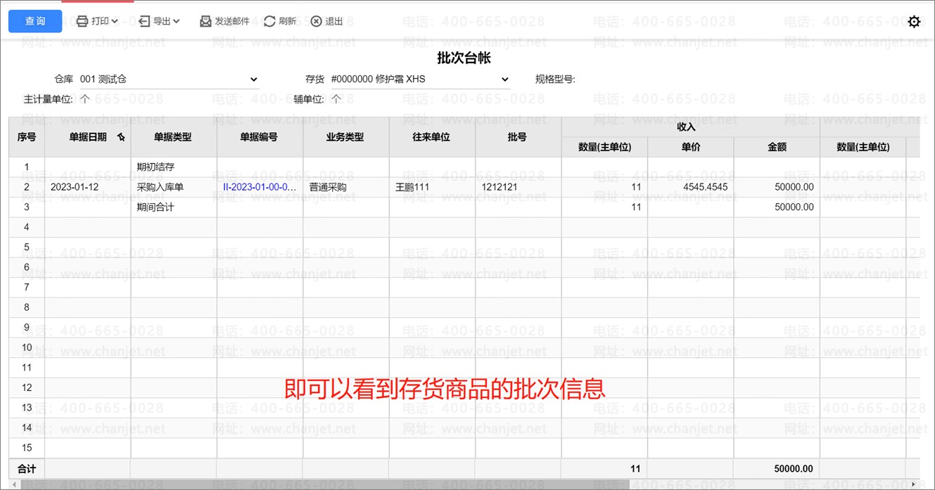 用于仓管员查询各仓库各存货各批次各月份的收发存明细情况。