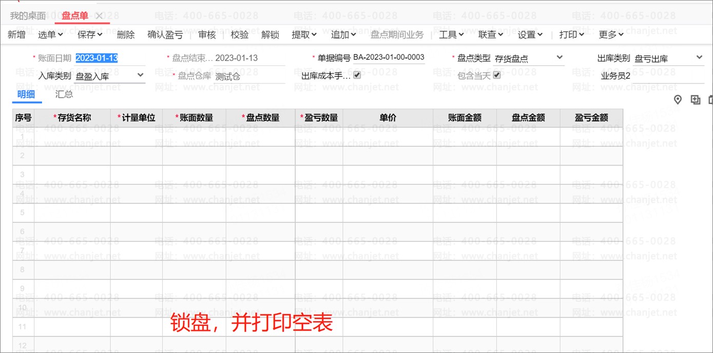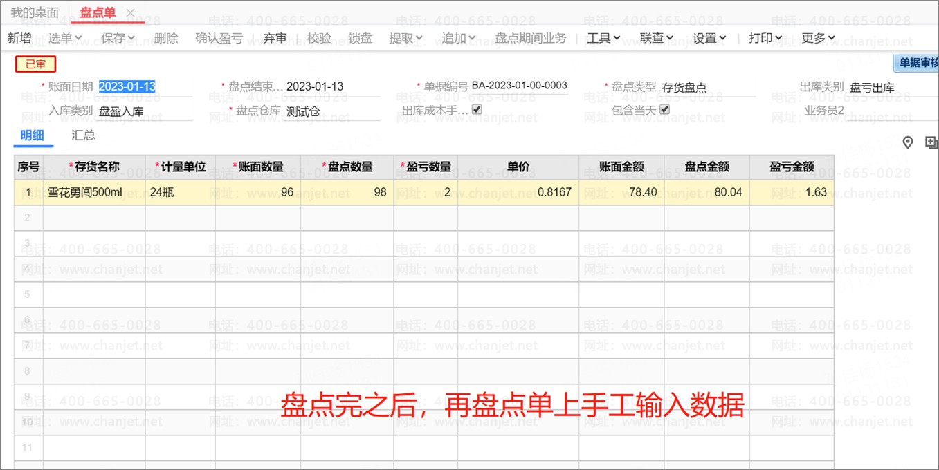 盘点业务在软件中的应用-静态控制下的按物盘点