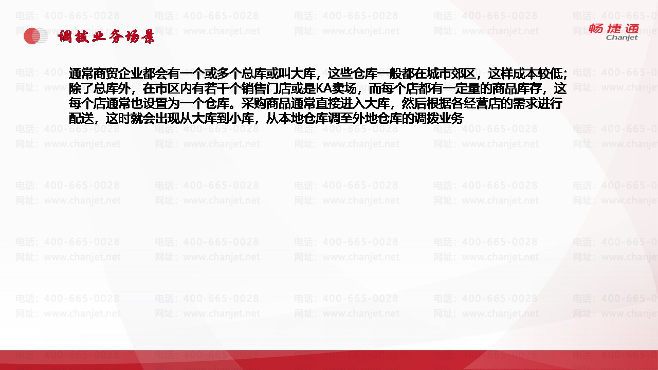 通常商贸企业都会有一个或多个总库或叫大库,这些仓库一般都在城市郊区,这样成本较低;除了总库外,在市区内有若干个销售门店或是KA卖场,而每个店都有一定量的商品库存,这每个店通常也设置为一个仓库。采购商品通常直接进入大库,然后根据各经营店的需求进行配送,这时就会出现从大库到小库,从本地仓库调至外地仓库的调拨业务