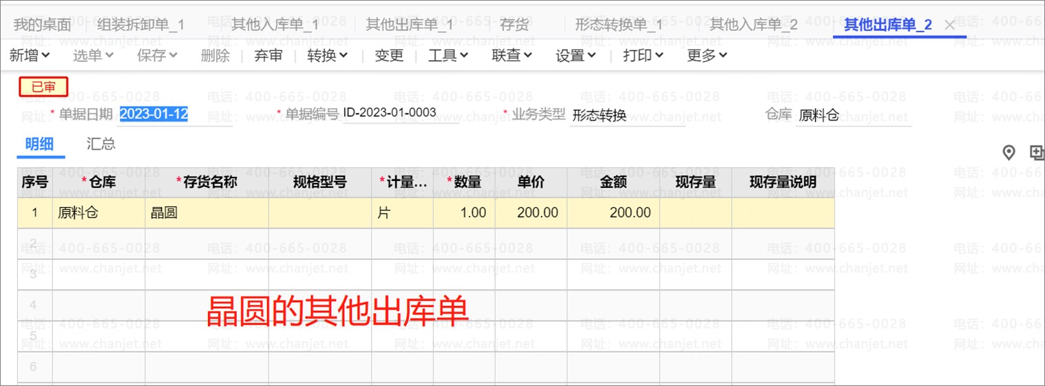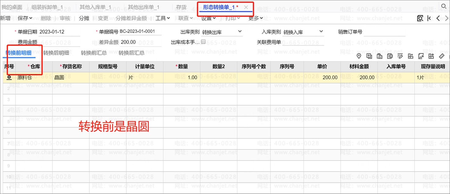场景:公司现在要将晶圆发出去切割成裸芯,但是每块晶圆都不知道能切多少块出来,只能事后通过形态转换单进行处理。