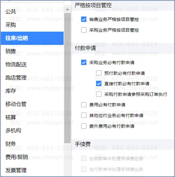 付款申请单用于处理针对向财务付款发出申请的业务场景,包括申请预付款、直接付款、普通付款(针对立账单据发起付款申请),可以录入结算方式等信息,直接推式生成付款单。若使用付款申请流程及单据,需提前在往来选项中启用付款申请相关选项