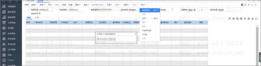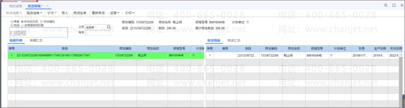2)根据拣货装箱,按照采购入库单和产成品入库单验货入库,按照材料出库单和销售出库单验货出库,扫码自动带出存货信息(包含名称、批号、生产日期、数量等),以条码录入方式进行盘点。