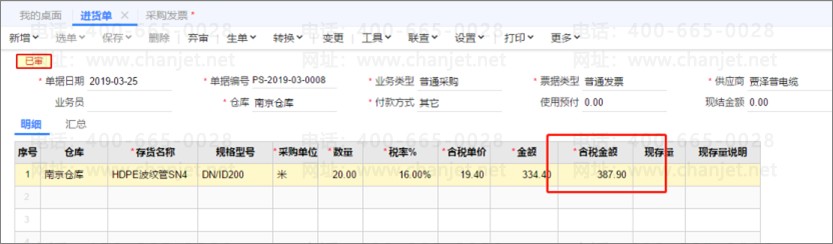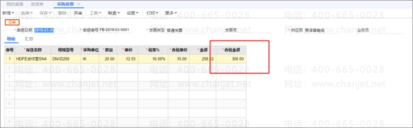 采购发票登记处理