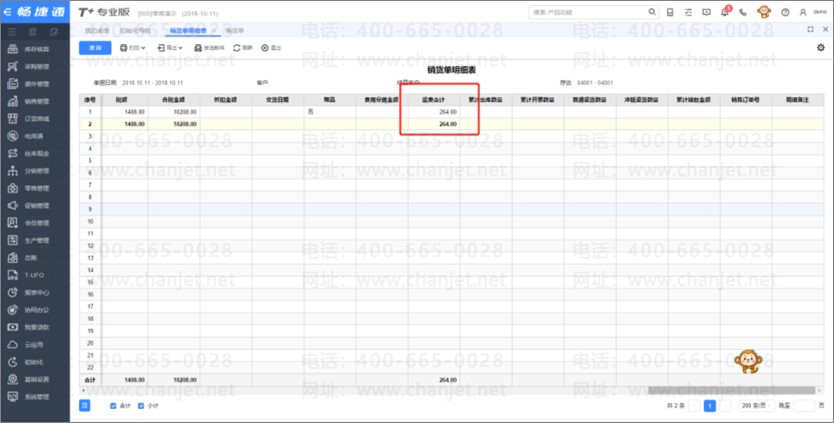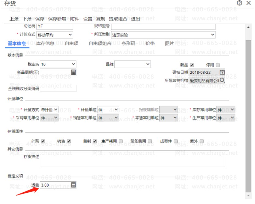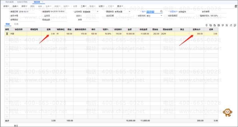 1)如图所示,销售员制单时,选中了需要计算运费的存货则会自动在销货单上带出运费,并根据数量自动计算出运费。
