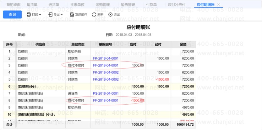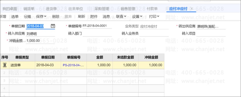 3) 在往来现金——应付冲应付中,把 B 供应商的应付款冲到 A 供应商中去,如图所示: