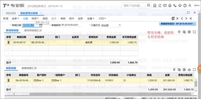 13、 销售期间,业务员出差的费用进行分摊,其分摊到销货单上,使销售毛利更精确