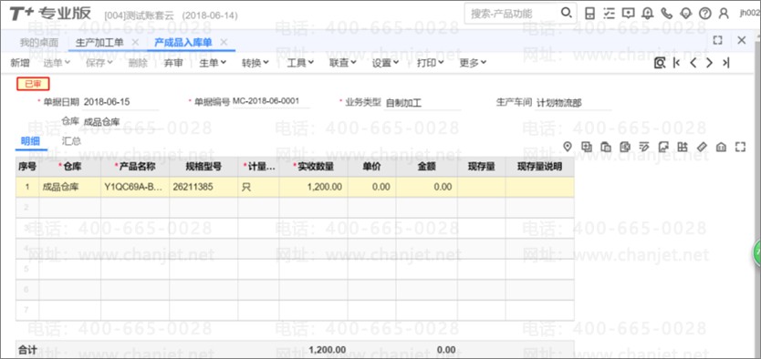 9、 待生产完工,做[产成品入库单]