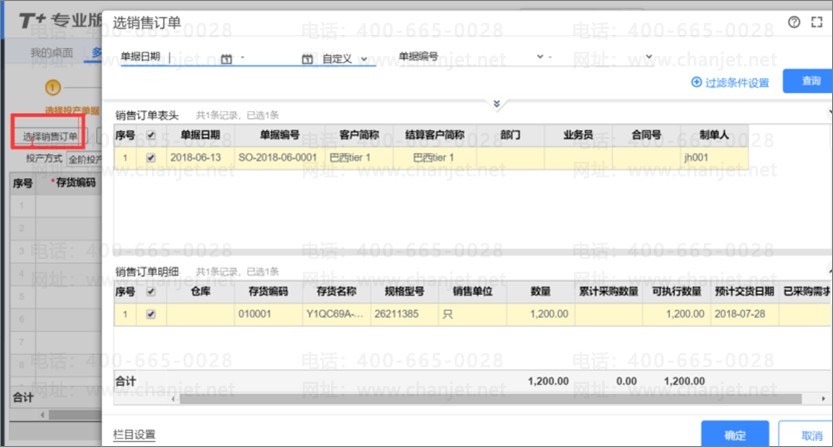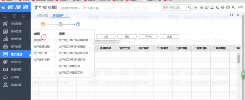 2、 此时,如果仓库有货,做销售出库单,进行发货;若库存没货,做[多阶投产]并自动生成[生产加工单]