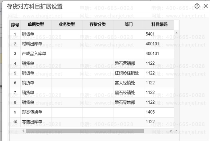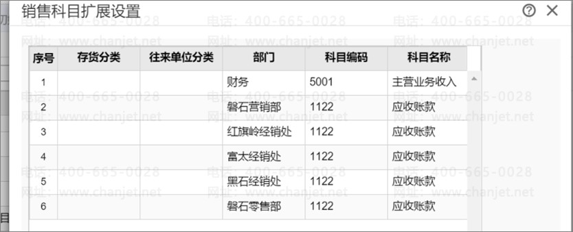 所有会计科目都做部门辅助核算,部门分为总部和销售处,销售处下设各级乡镇零售部门。总往销售处(各级镇零售店)发货在库存做异价调拨单,调拨价格为总部销售价,差异科目为“主营业务收入”。