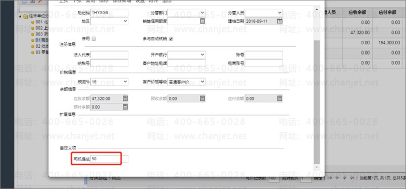 在往来单位档案中新建一个“司机提成”的数值自定义项。
