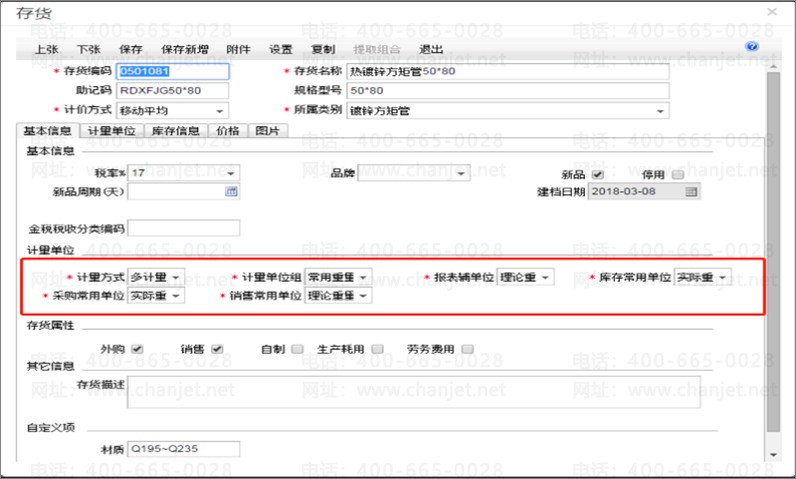 1)如图所示,建立存货档案时选择多计量。