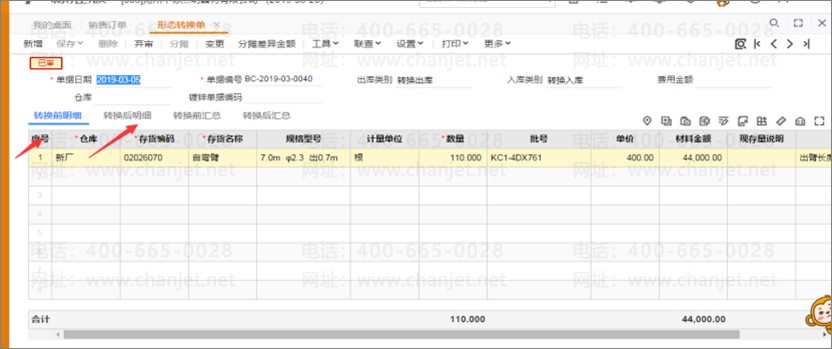 不同的合同编号的存货可以进行形态转换单进行转换,达到不同合同编号的单子可以拼凑紧急发货。