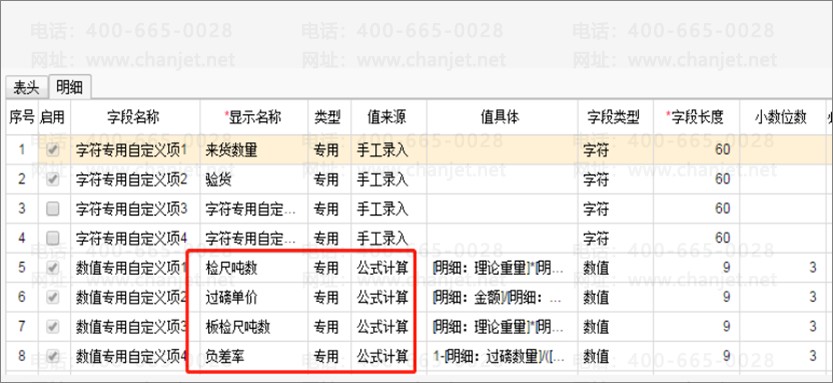 存货自定义设置长度,宽度,过磅单价,吨数,负差率等