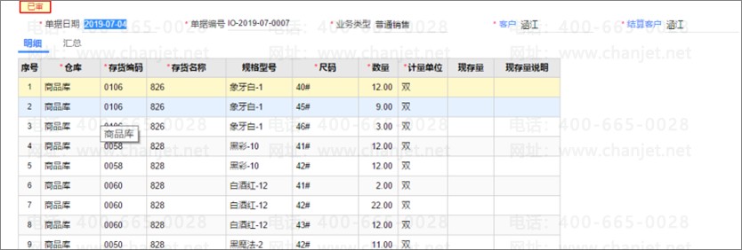 手机端直接开销售单,库存在接到销售的销货单之后根据销售单直接生成销售出库单,并且根据实际发出的鞋子尺码再做出库单的修改,保证了库存的准确和快速出库,老板可以直接用自己的账号登录手机或者电脑直接进行销售和出库的报表查询,极大的简化的流程提高效率。