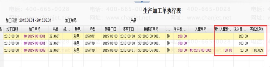 1、 生产加工单执行表