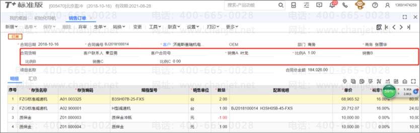 解决办法:在销售订单上增加销售 A,B,C 多个字段,增加比例 A,B,C,等由商务在填写销售订单时候根据公司要求进行手动分配。