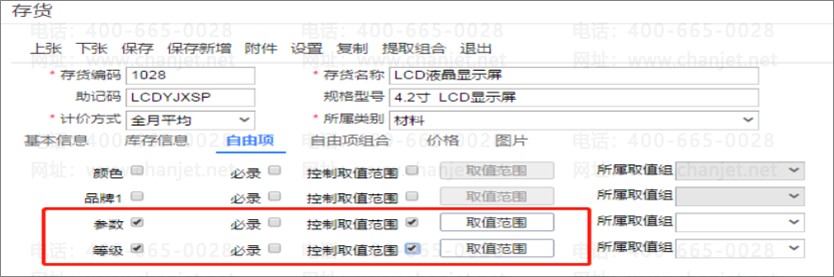 物料清单里面的显示屏材料,启用参数,等级不设置自由项必录,生产订单下达时再指定或替代变更时批定。