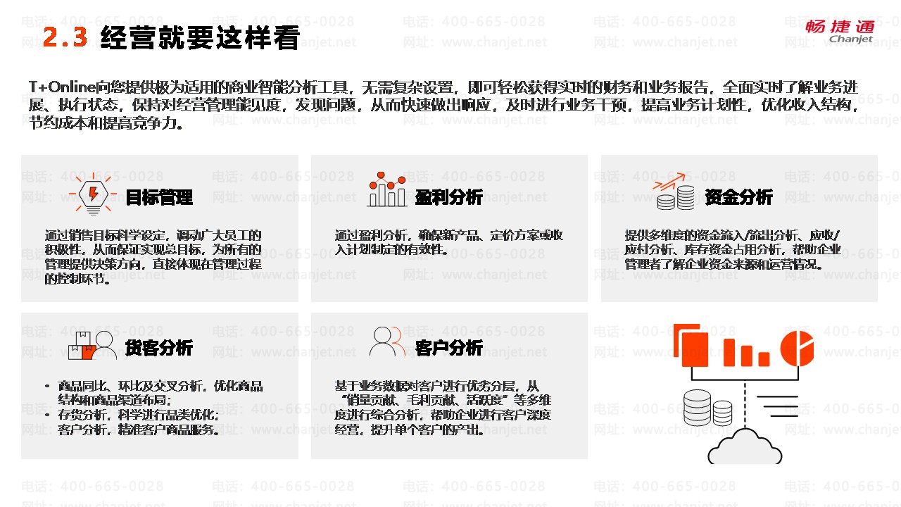 T+Online向您提供极为适用的商业智能分析工具,无需复杂设置,即可轻松获得实时的财务和业务报告,全面实时了解业务进展、执行状态,保持对经营管理能见度,发现问题,从而快速做出响应,及时进行业务干预,提高业务计划性,优化收入结构,节约成本和提高竞争力。