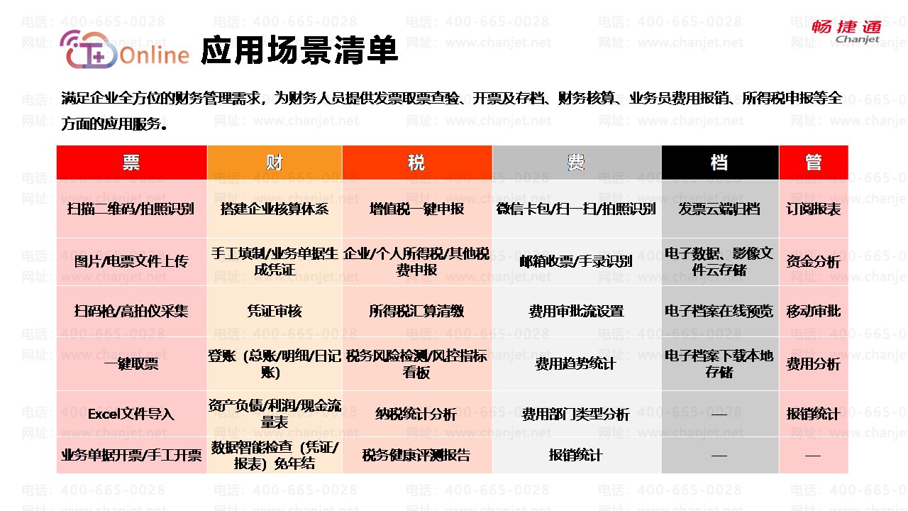 满足企业全方位的财务管理需求,为财务人员提供发票取票查验、开票及存档、财务核算、业务员费用报销、所得税申报等全方面的应用服务。