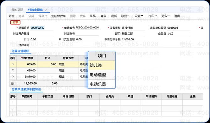 付款申请单、付款单多结算明细增加“项目”字段,可一次性申请支付多个项目款项。