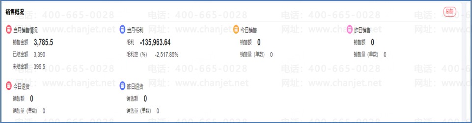 管理层,需要直观的看到本月/日销售情况、毛利以及退货情况等,不希望再去查询报表。