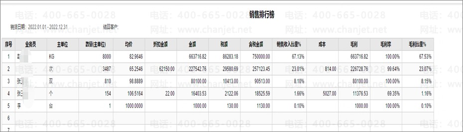 ① 需要一个业务员销量排行榜(按天、月、季度),随时关注业务员的业绩情况;
