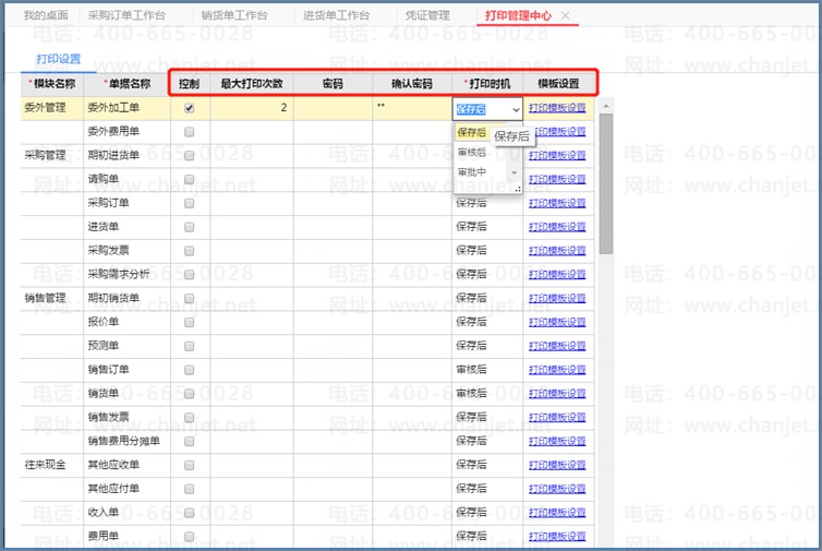 ③打印时机可以灵活选择保存还是审核后。