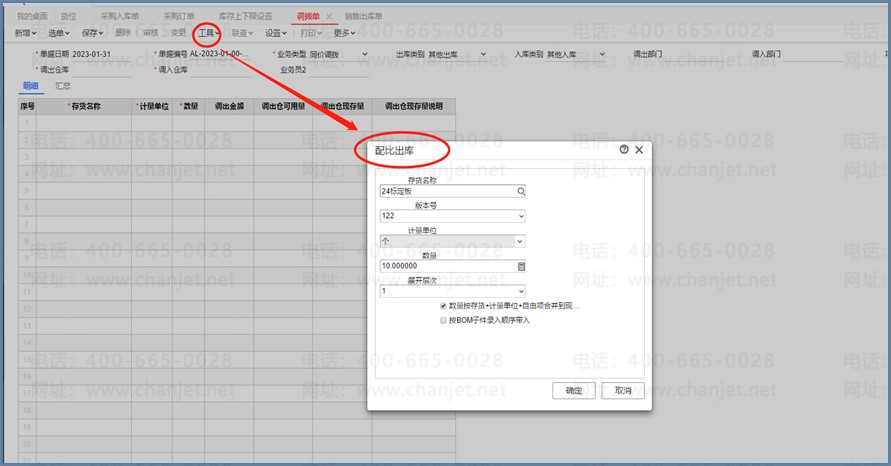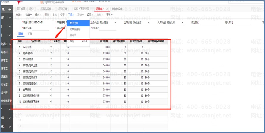 制造型企业,原材料领料、原材料从总仓调拨到车间仓。