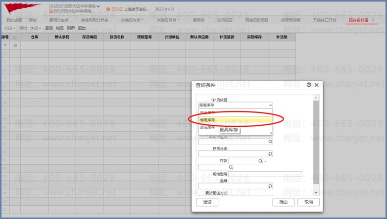 根据最高库存进行补货,即以实际库存或可用量低于最高库存的差值进行补货。