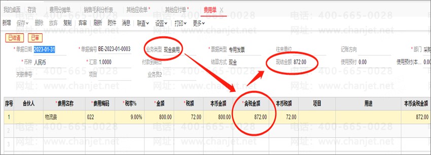 通过费用单-现金费用进行报销现结。