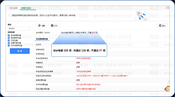 根据财务制度、数据流向和服务过程中遇到的问题,提供财务数据检查工具,系统预置检查规则,用户可以设置和调整检查规则。按检查规则自动对系统进行检测,支持问题的追溯查询,更正处理。
